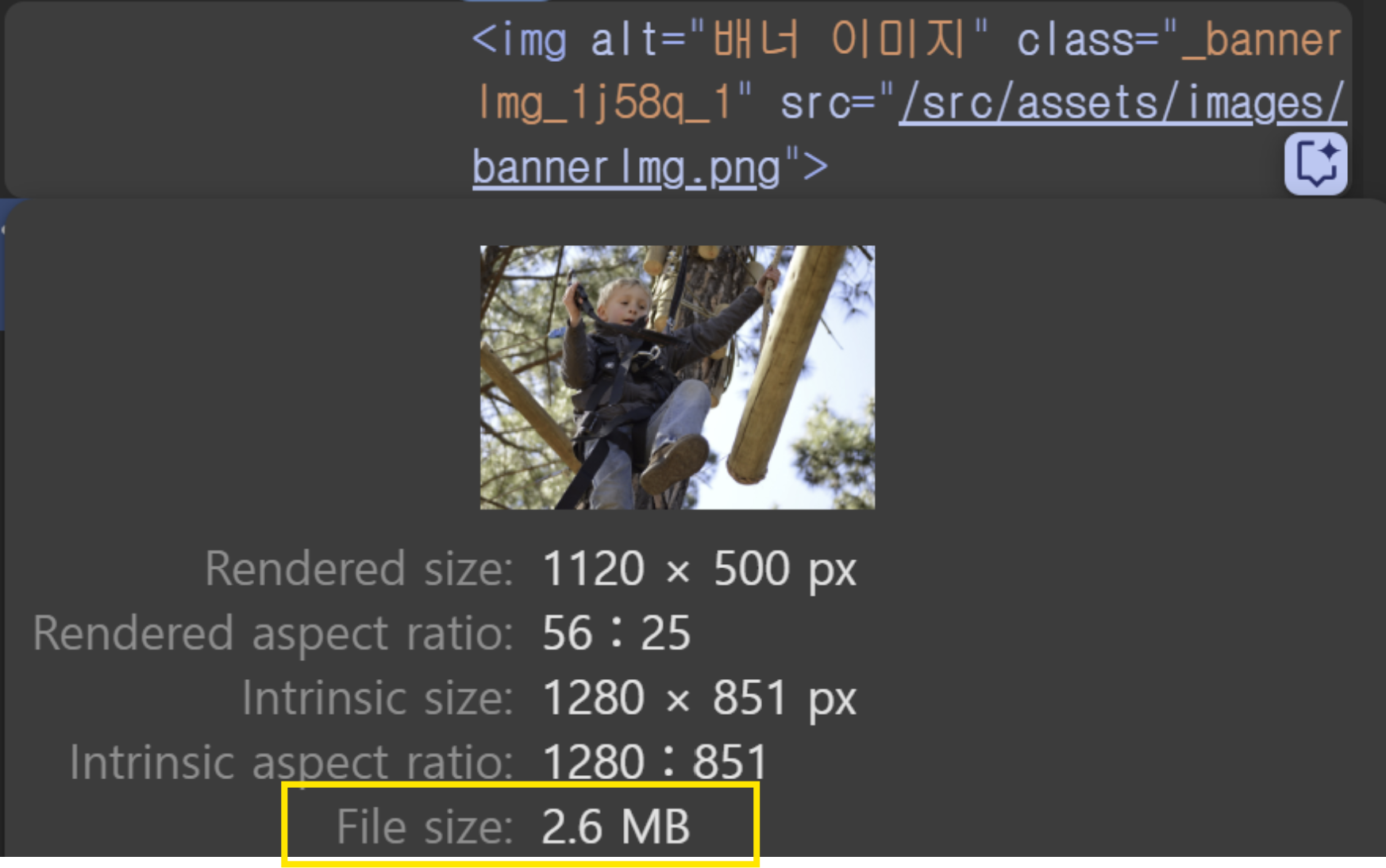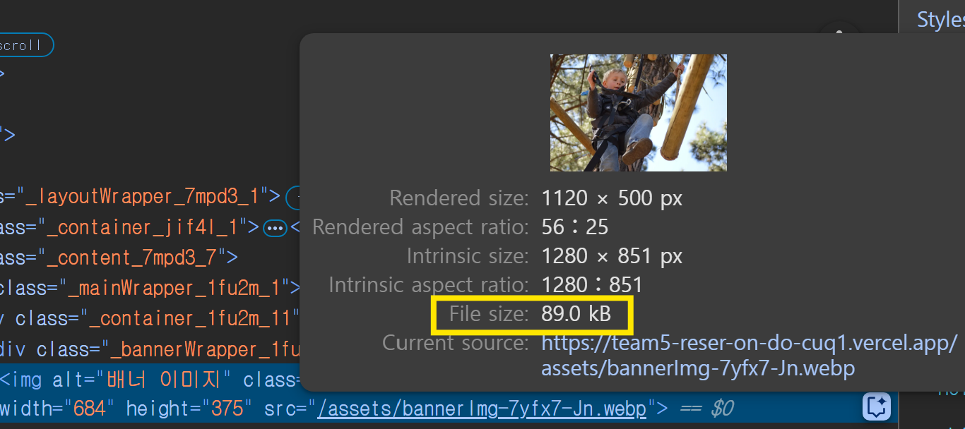 📷 동일 이미지의 PNG(2.6MB)와 WebP(89KB) 비교 — 해상도 동일(1280×851)임에도 용량 대폭 절감