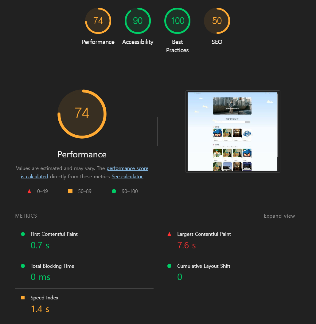 - 성능 점수 : 74점